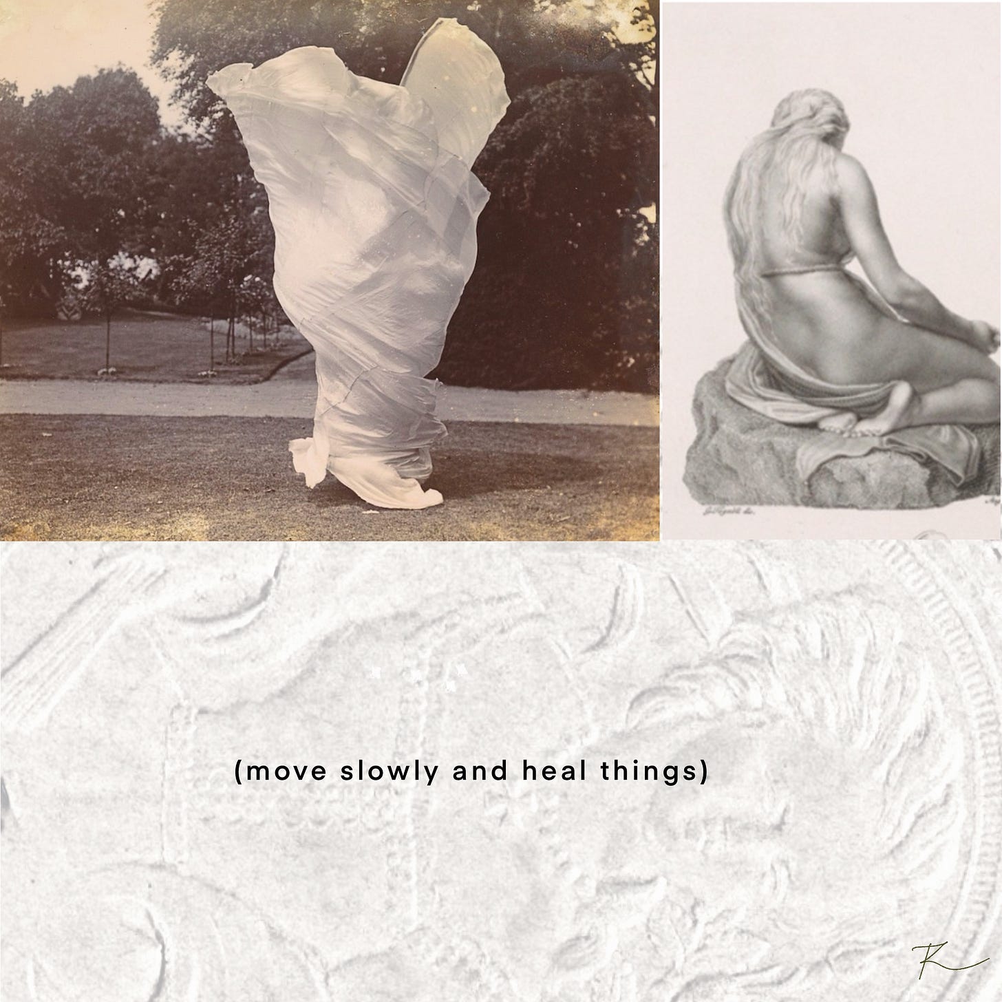 I wanted to kick things off by sharing some new visual explorations I’ve been quietly developing for the last couple months. I notice my collage/ image making skills deepening. With an intuitive sophistication, the works are coming off softer and more nuanced. As a new addition, I’ve used text to give more weight to the visual compositions. Most of the images have been sourced from the rich public domain image repository by Cosmos, which is my new favourite + safe place on the internet right now. I feel like a latent curatorial skill in me has been energised again!